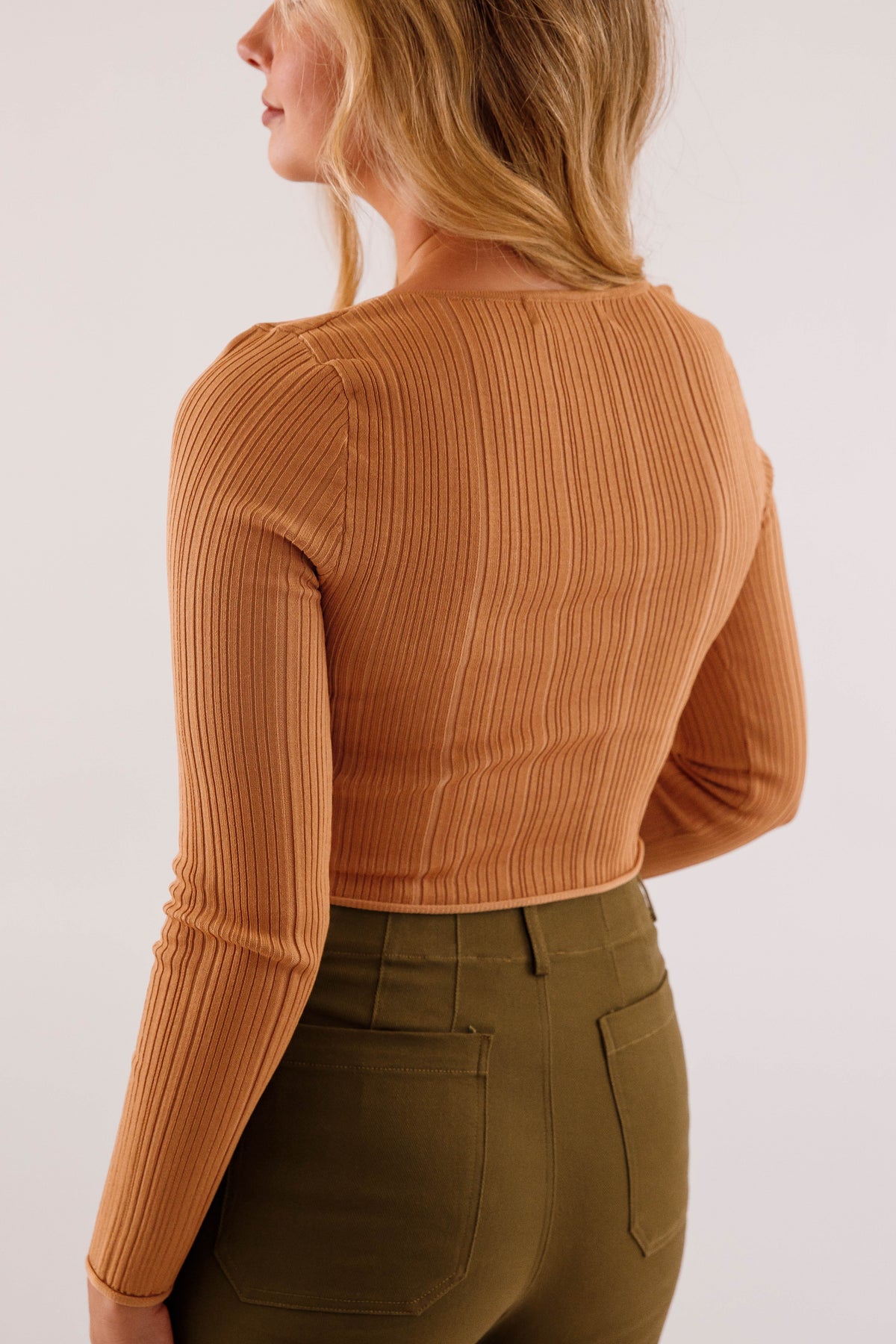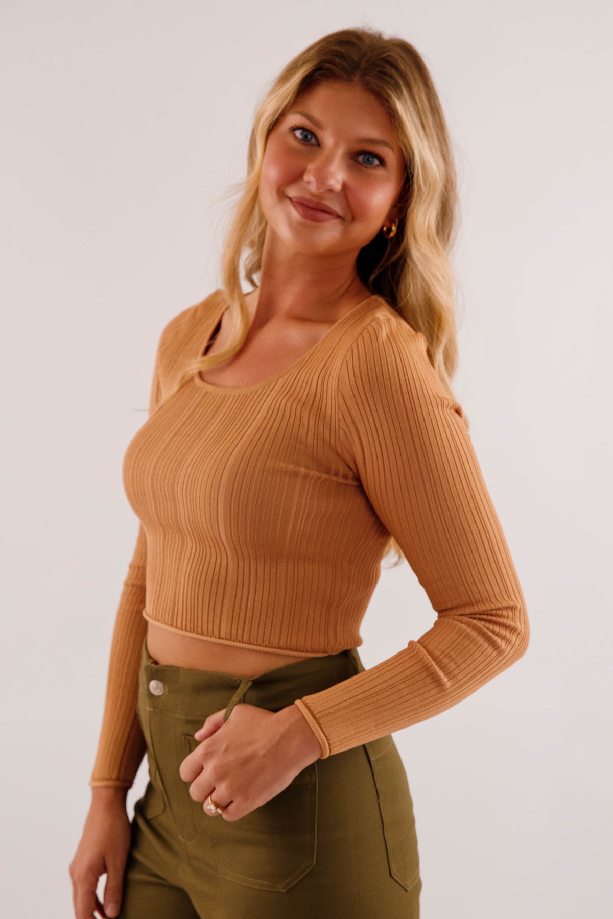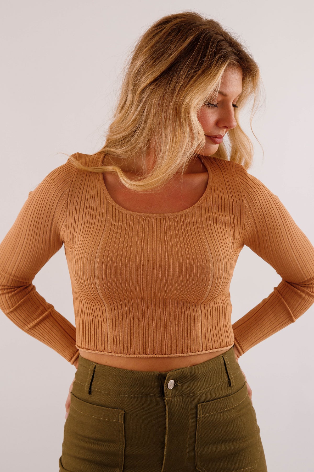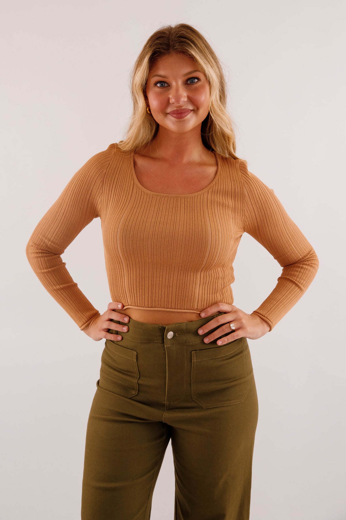 Wrap yourself in coziness with our Sweet Sentiments Ribbed Top! The sweater's ribbed knit adds texture and warmth, while the scoop neck and long sleeves offer a flattering fit. This cropped top is perfect for any occasion, pairing perfectly with high-waisted bottoms for a playful look.