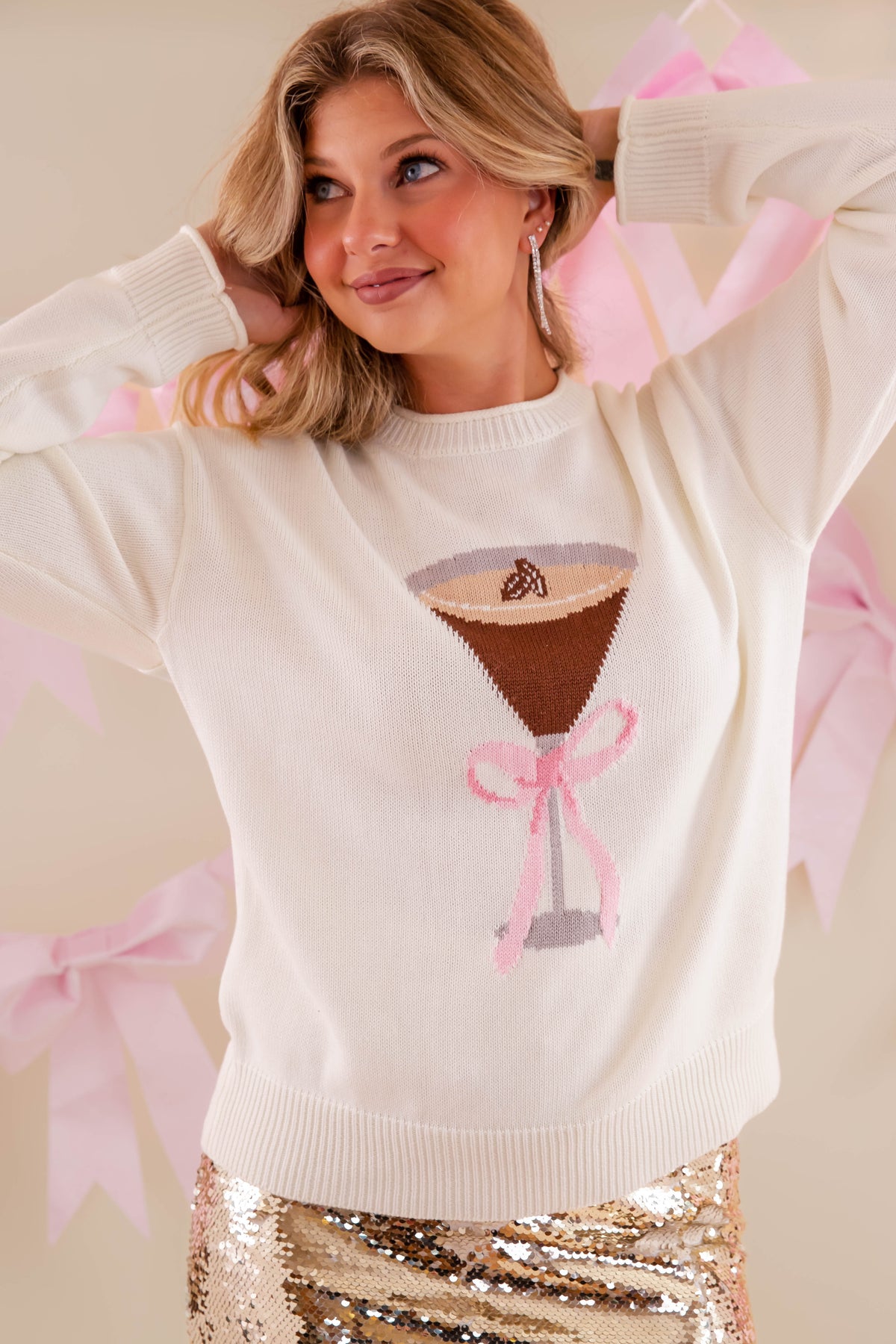 Espresso Martini Bow Sweater- Knitted Martini Sweater- LeLis Martini Sweater
