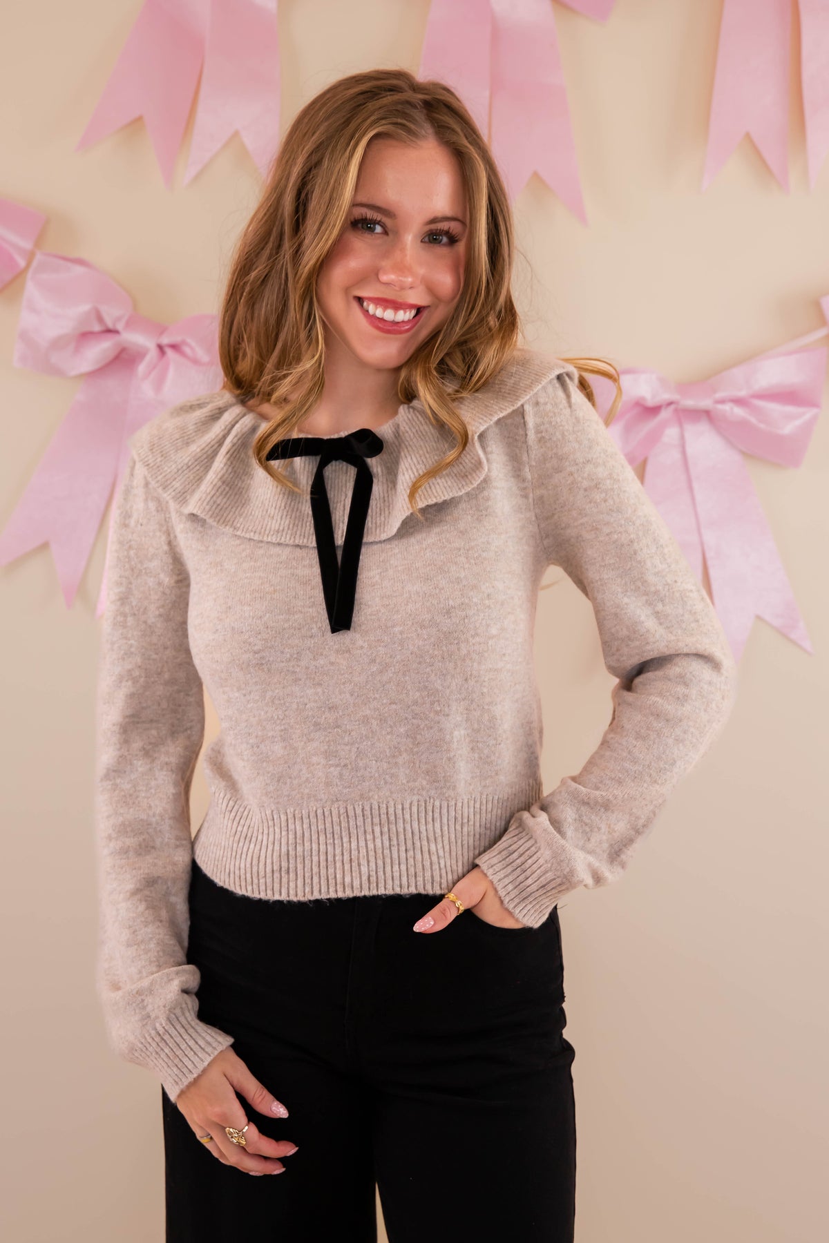 Ruffled Neckline with Bow Detail Sweater- Designer Inspired Sweater- Mable Ruffled Sweater with Bow