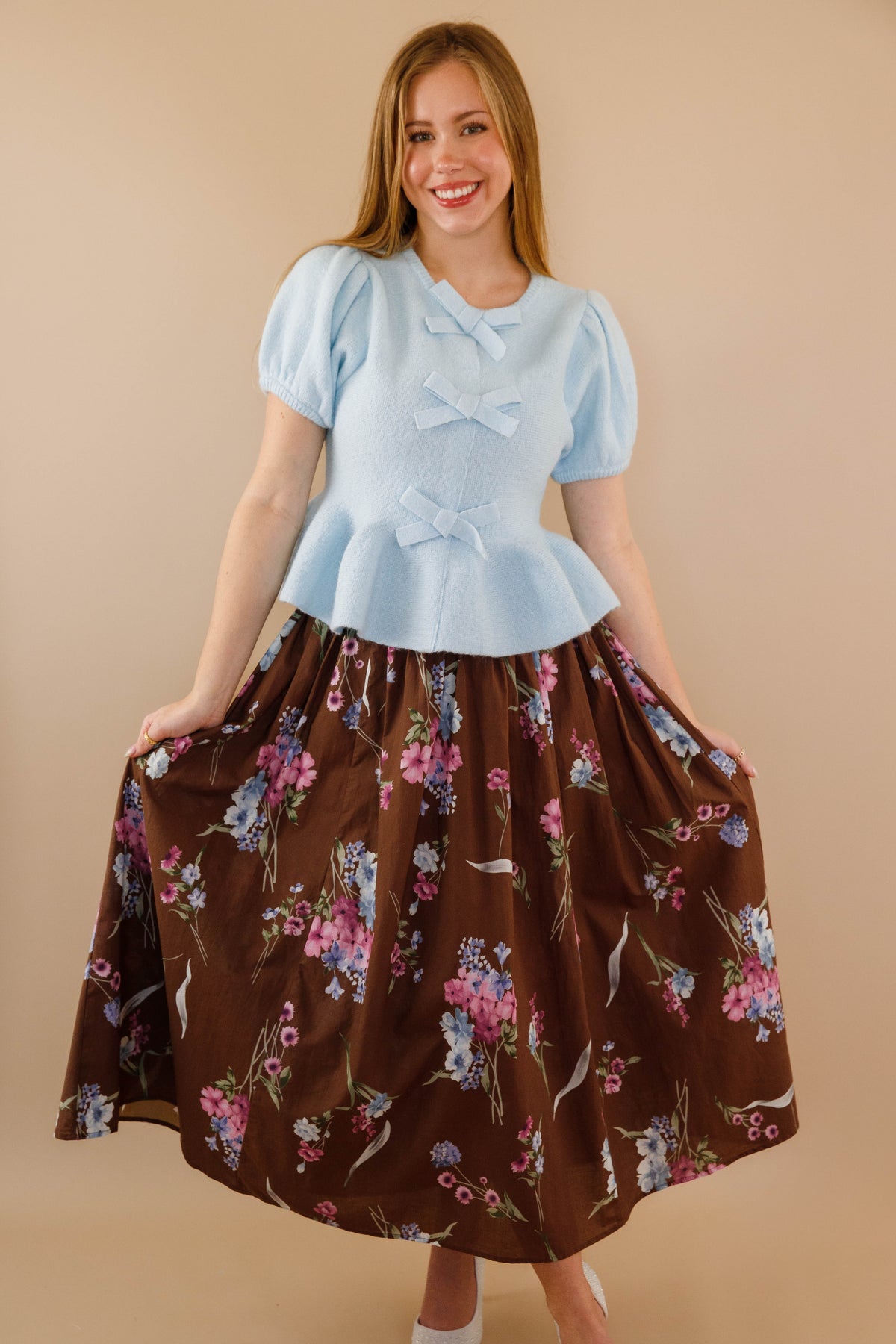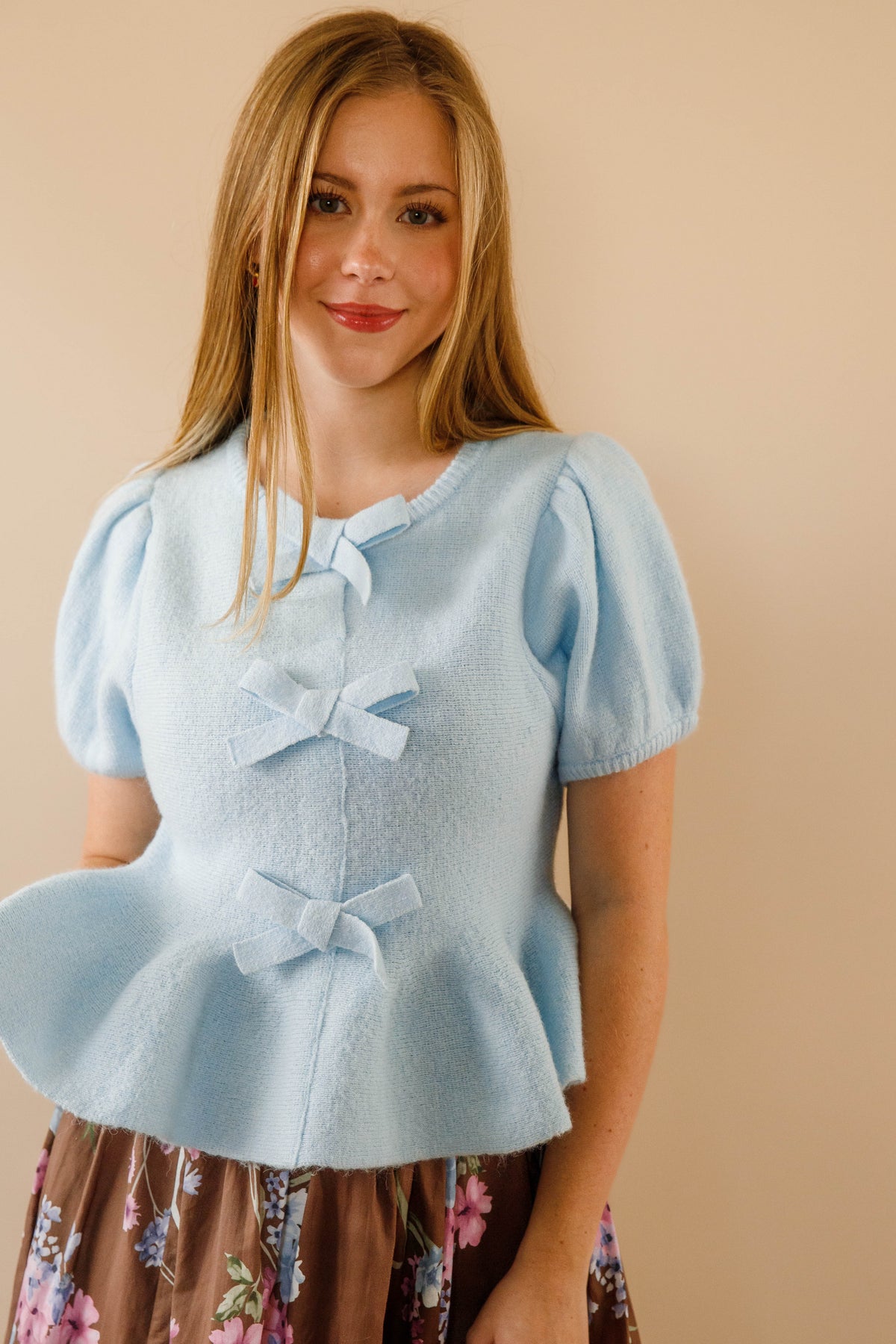 Light Blue Knit Bow Peplum Top- Blue Peplum Sweater- Mable Sweaters