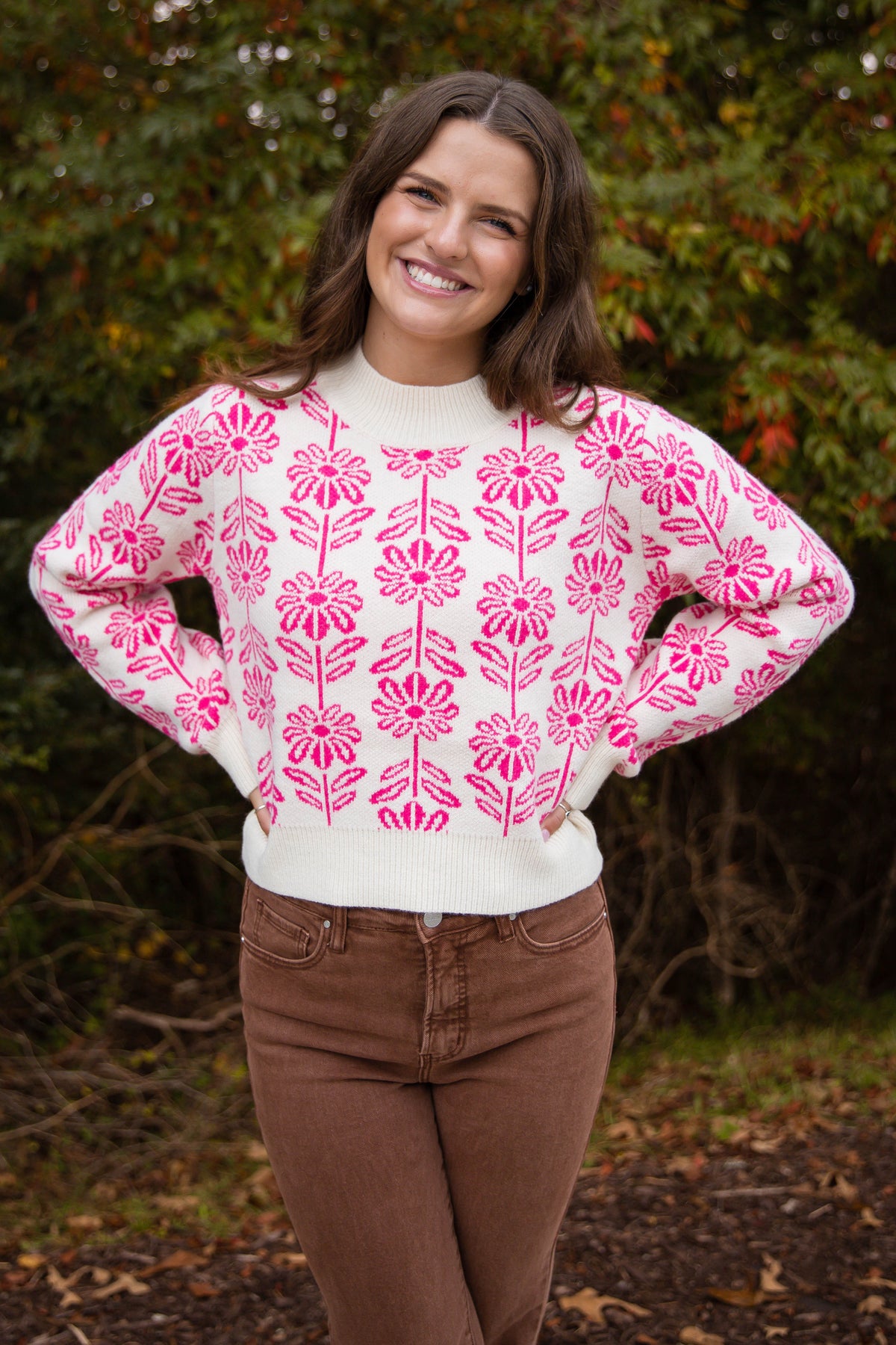 Embrace power and patience in this beautiful floral pattern sweater. Crafted with a ribbed high round neckline, hem, and cuffs, it’s a cozy and stylish pullover that adds an elegant touch to any ensemble. Warm, comfortable, and timeless - this sweater is a must-have for any wardrobe!
