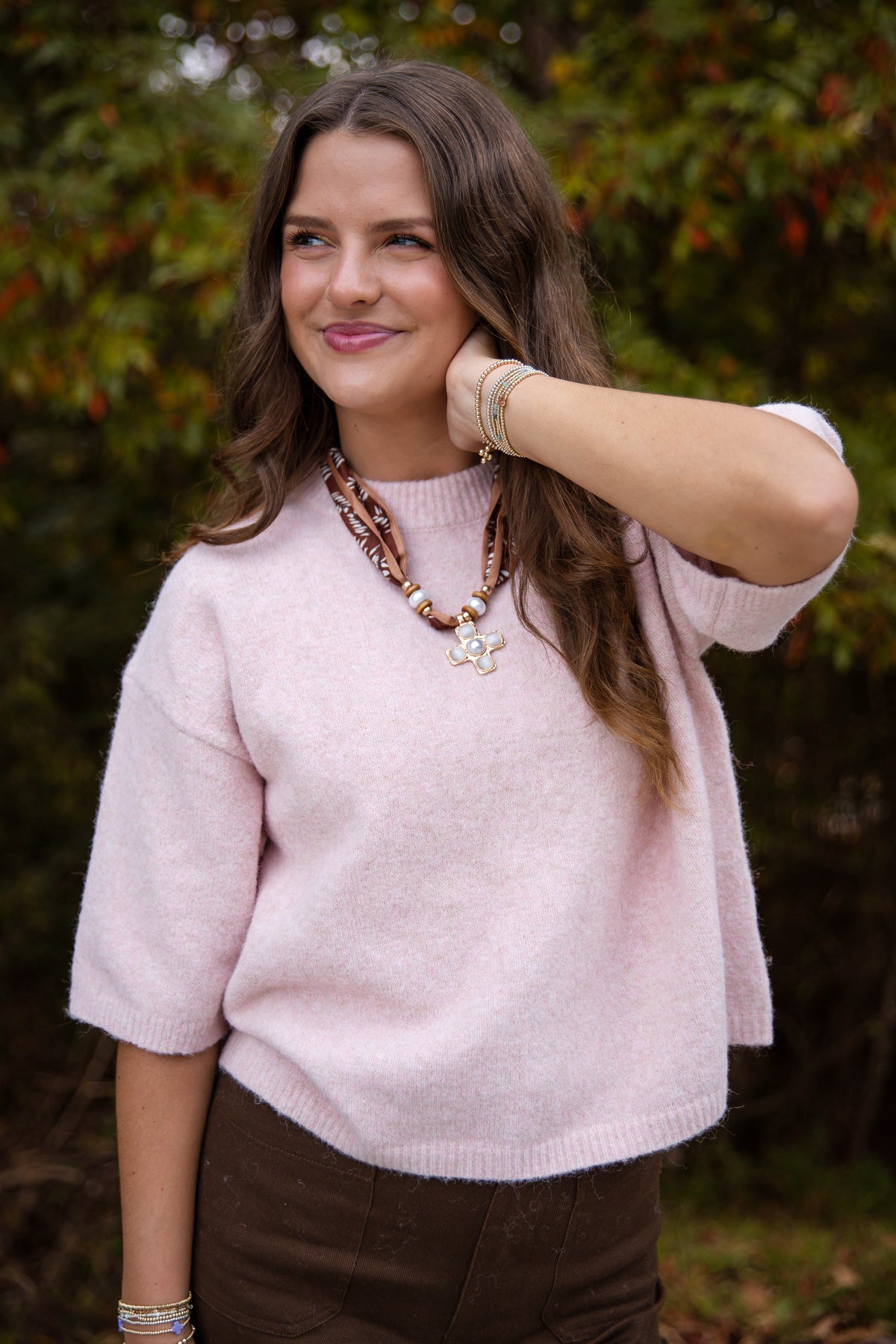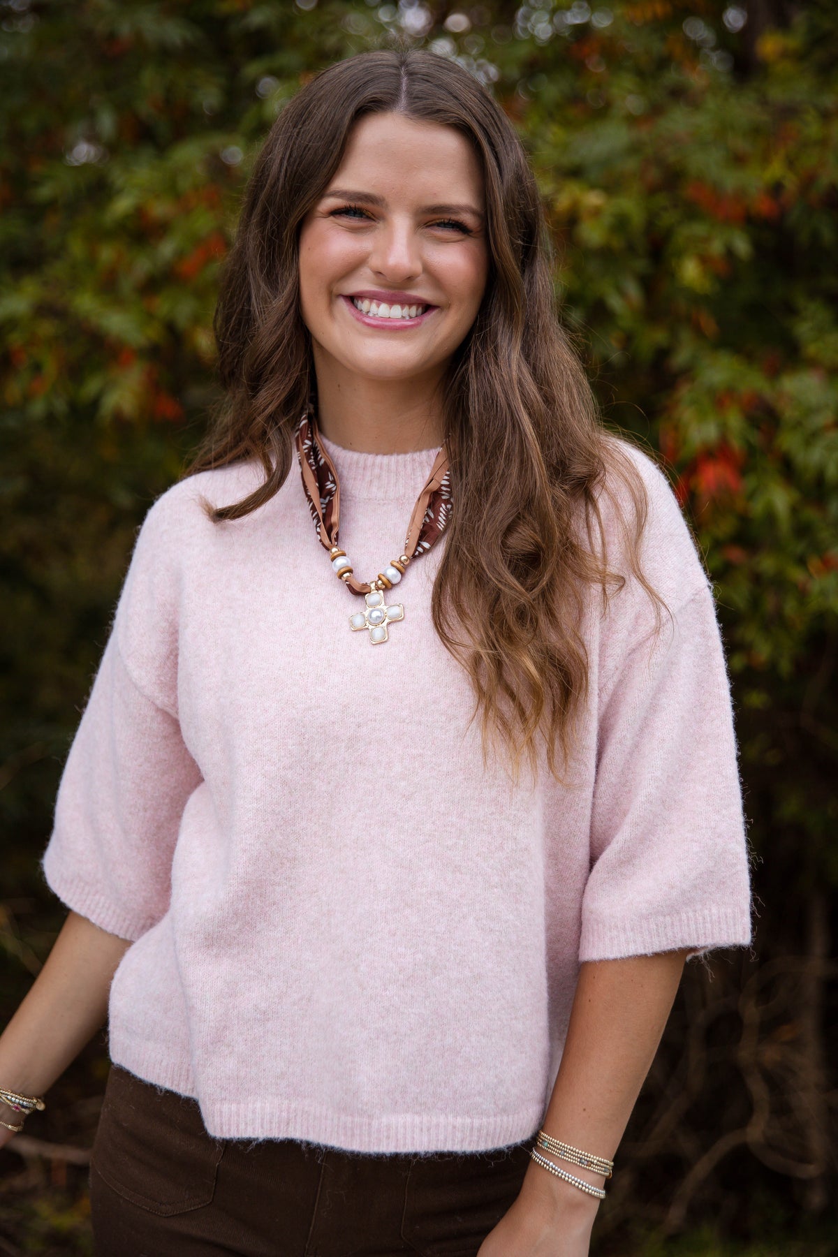 Switch up your casual wardrobe with the Take A Look At It Sweater in pale pink. This super soft short sleeve sweater features a flattering boxy fit and ribbed detailing on the sleeves and hemline, blending comfort and style effortlessly. Its mixed-fabric silhouette offers a cozy, polished look that's perfect for layering or wearing alone. Pair it with your favorite jeans or tailored pants for an everyday outfit that’s chic and comfortable!
