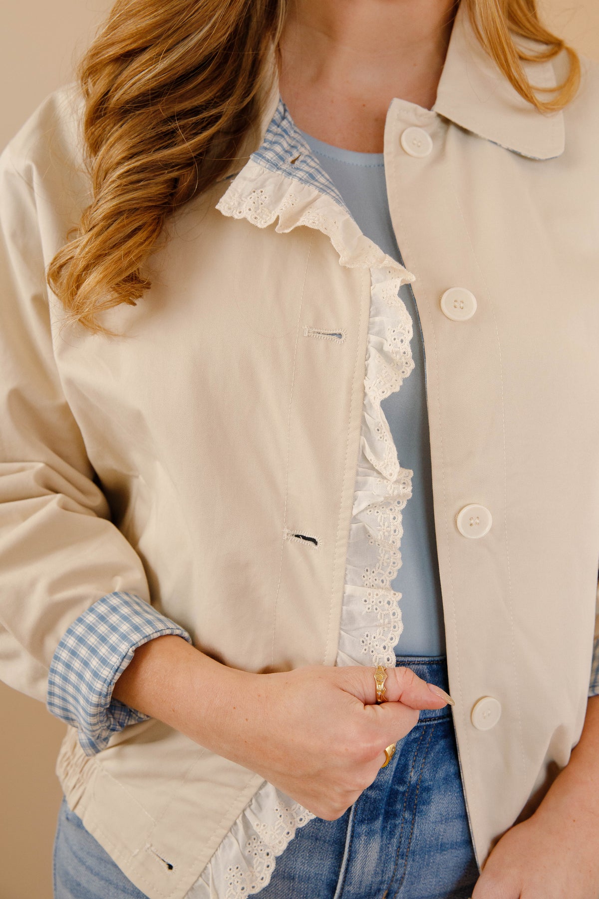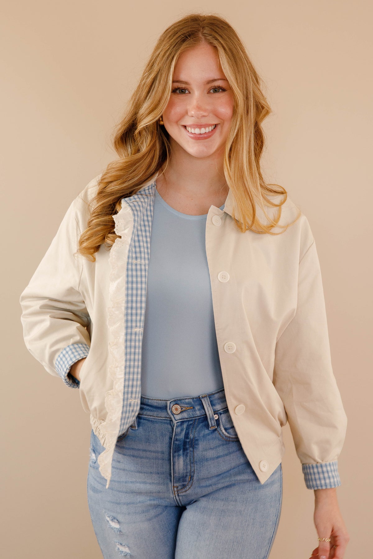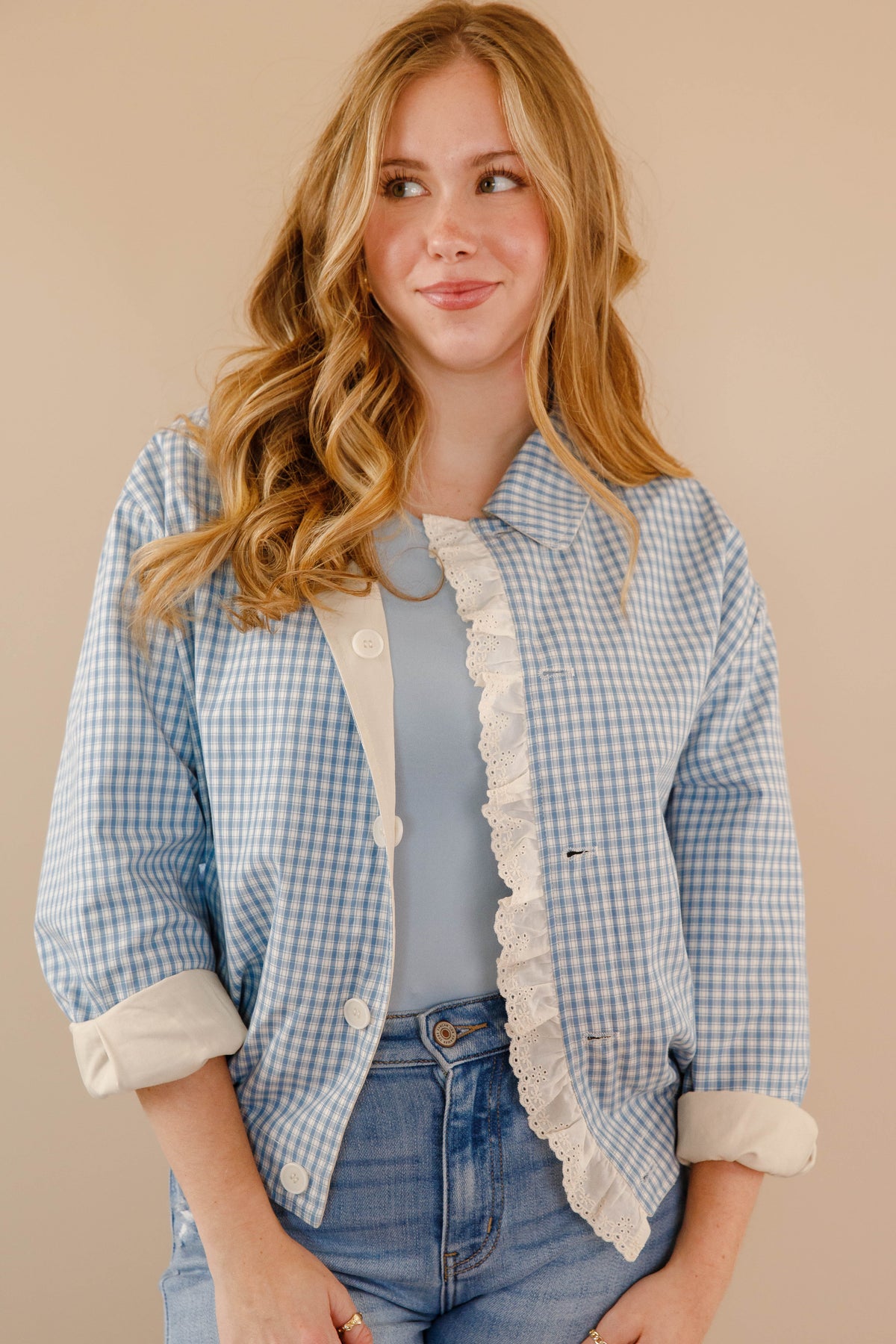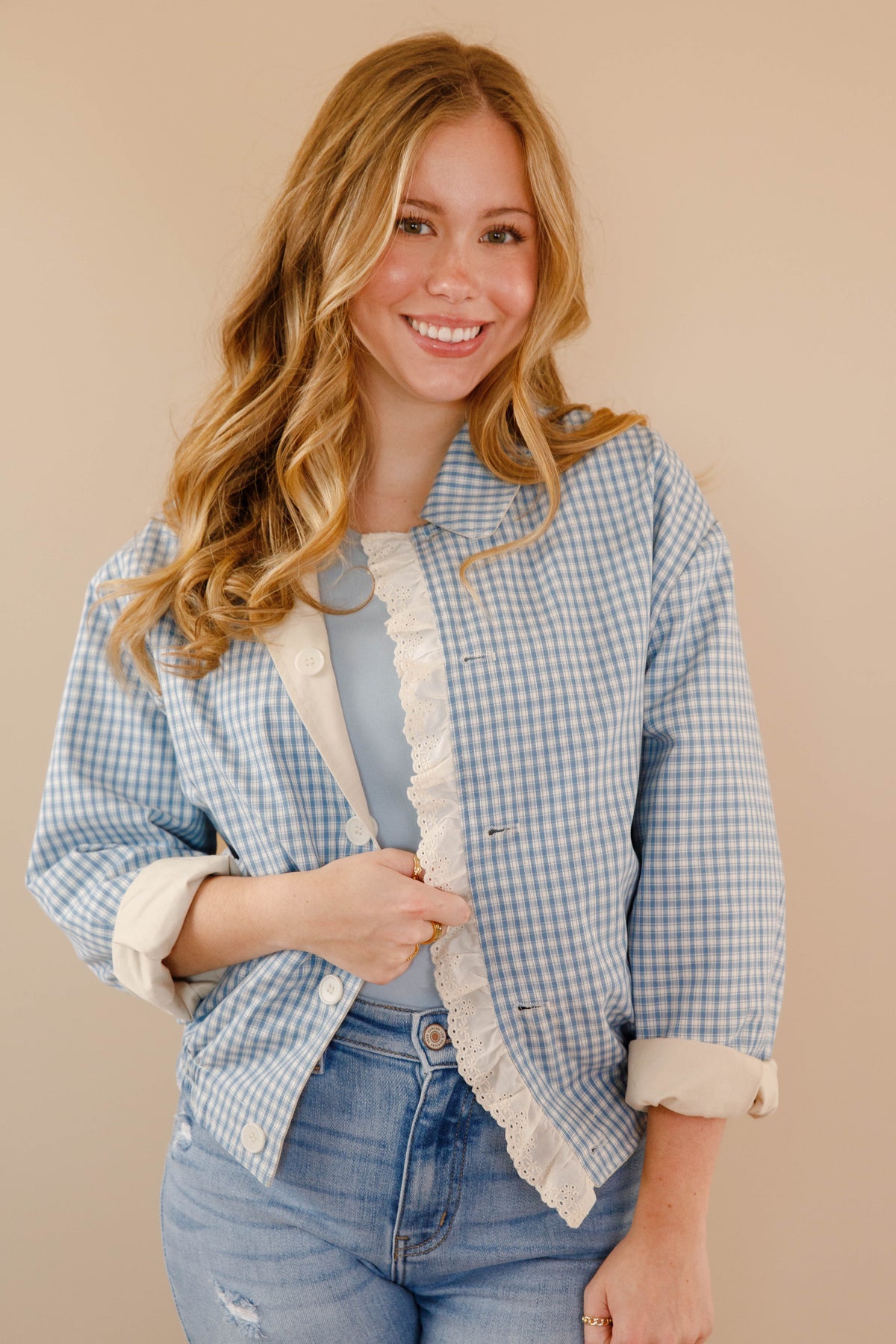 Reversible Gingham Ruffle Jacket- Women&