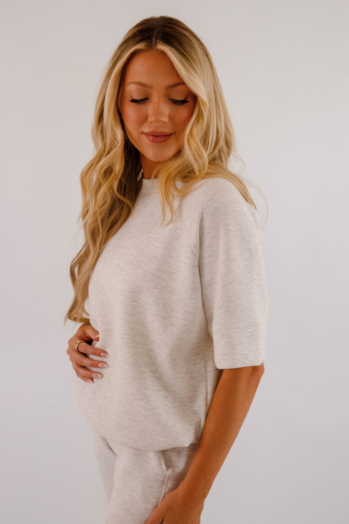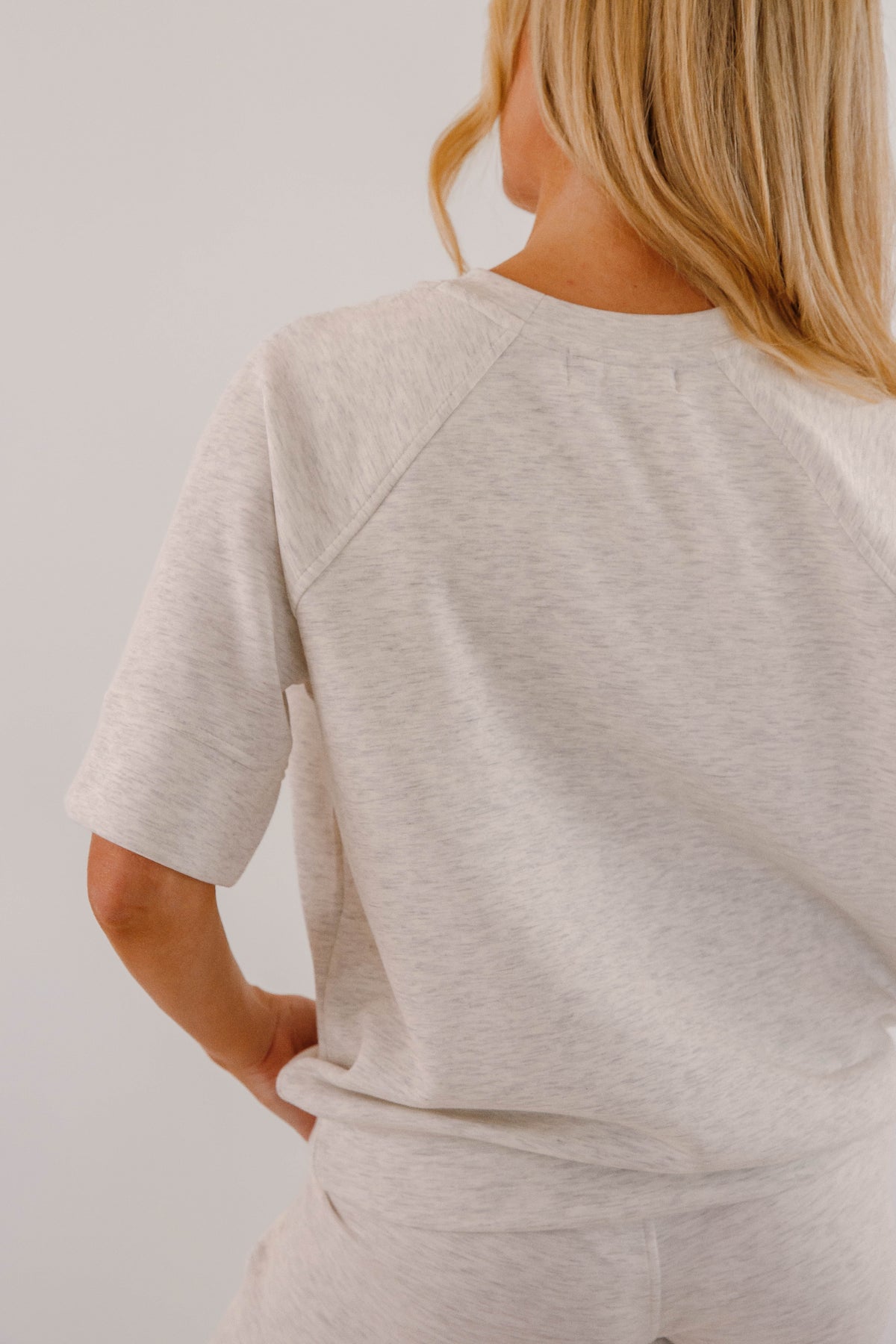 Elevate your everyday wardrobe with this All The Energy Short Sleeve Pullover. Crafted from luxurious scuba fabric, it offers silky smooth comfort and lightweight breathability. The relaxed fit, dropped shoulders, and oversized sleeves create a chic silhouette that moves with you, thanks to 4-way stretch for all-day flexibility. Perfectly combining style and ease, this top adds effortless cool-girl energy to any casual look!