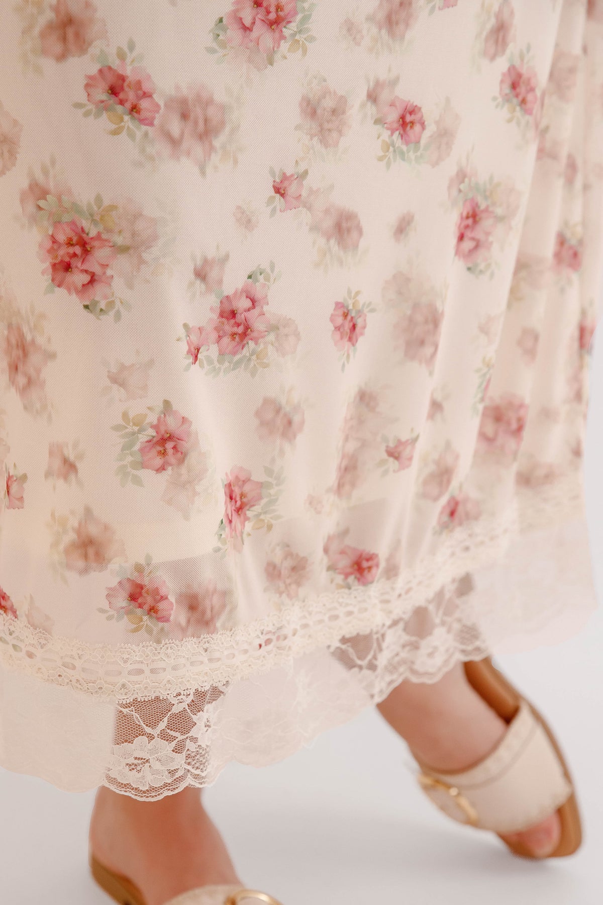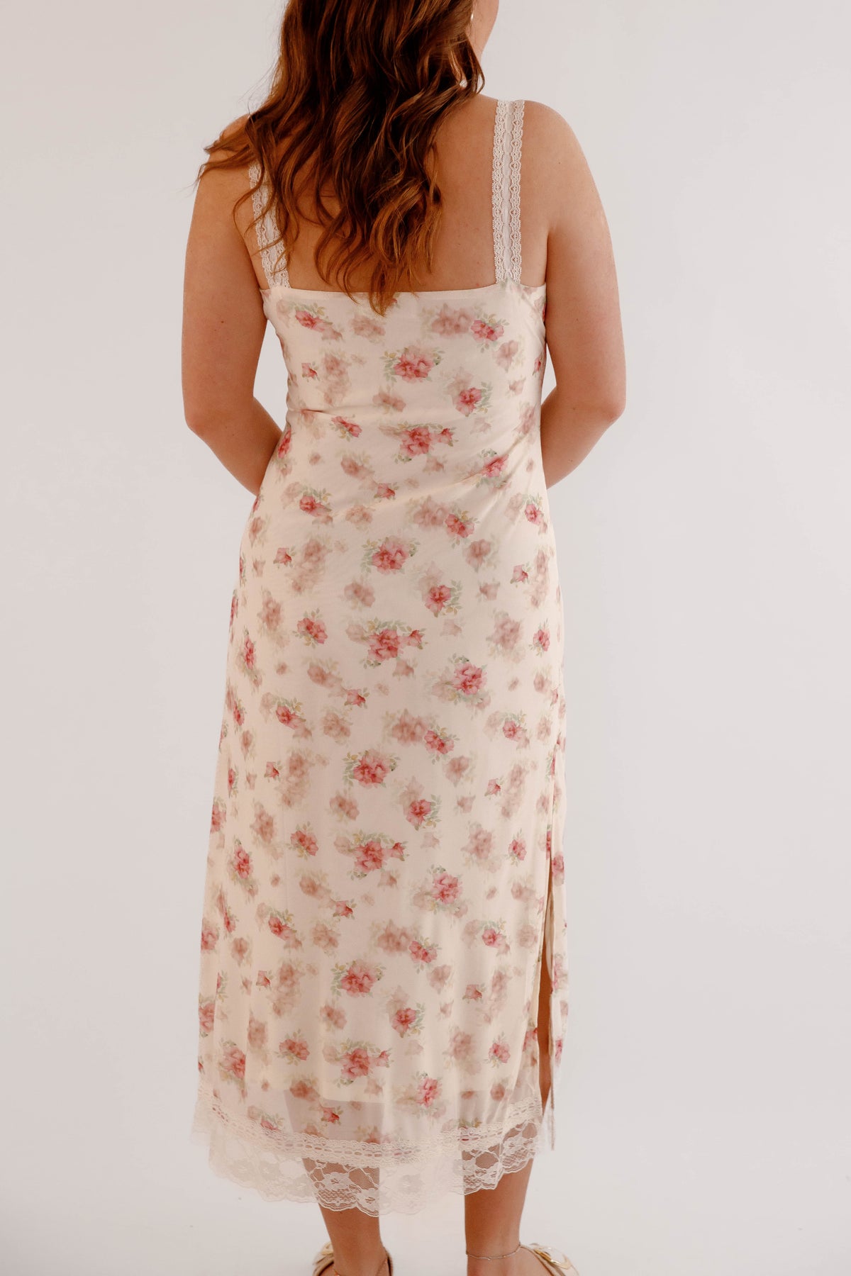 Vintage Rose Floral Lace Trim Midi Dress – Romantic Cottagecore Slip Dress- BaeVely 90s Floral Dress