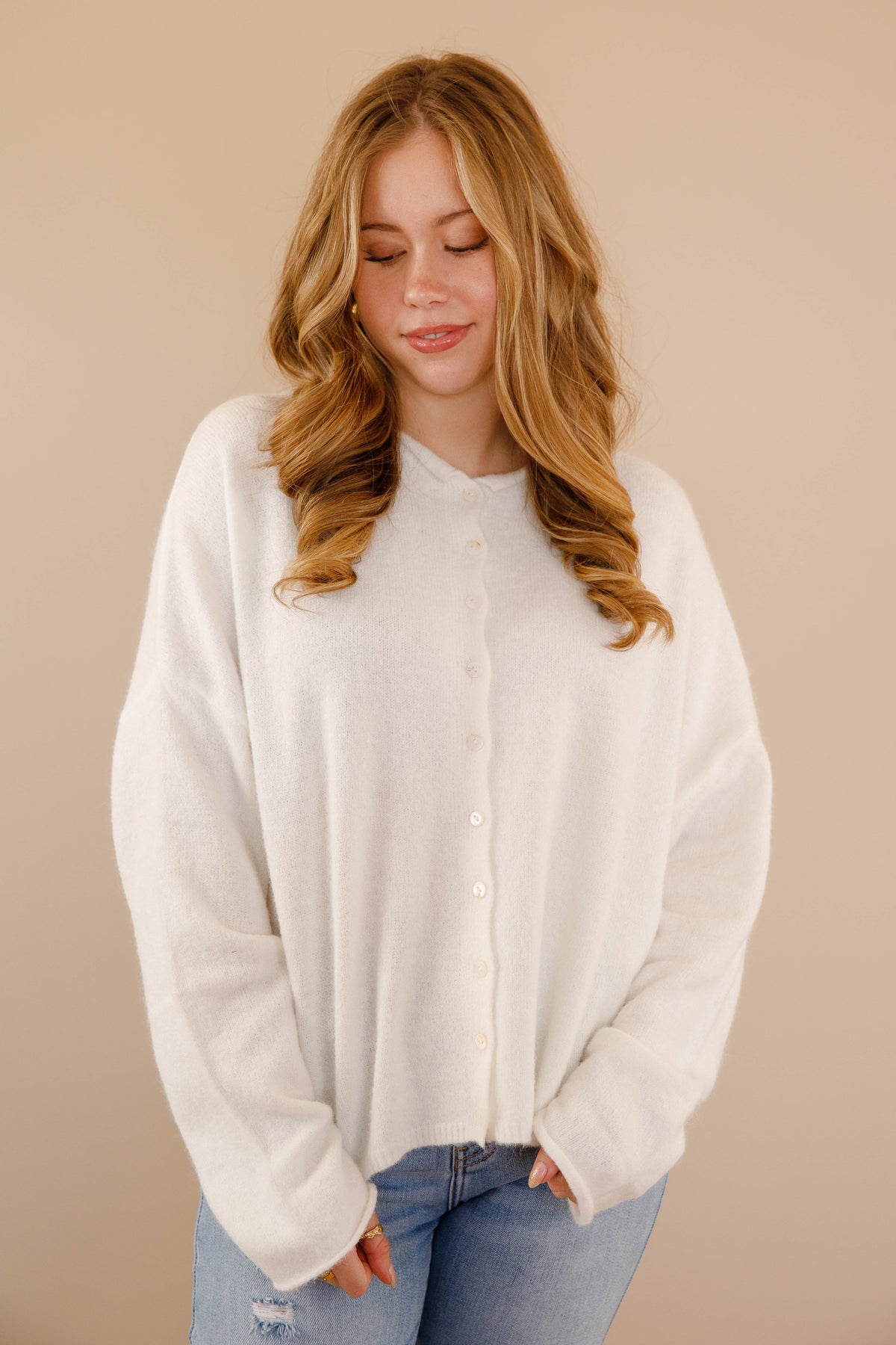 Rolled Neck Collar Cardigan- Things Between Cardigan- Emilie K Cardigan